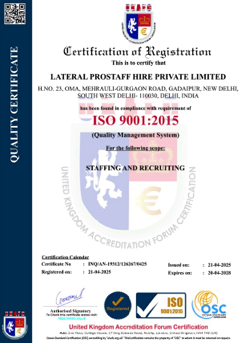 At Lateral ProStaff, we empower careers with trust and excellence, delivering reliable staffing solutions, fostering professional growth, promoting collaboration, and ensuring businesses achieve success through skilled, dedicated talent.